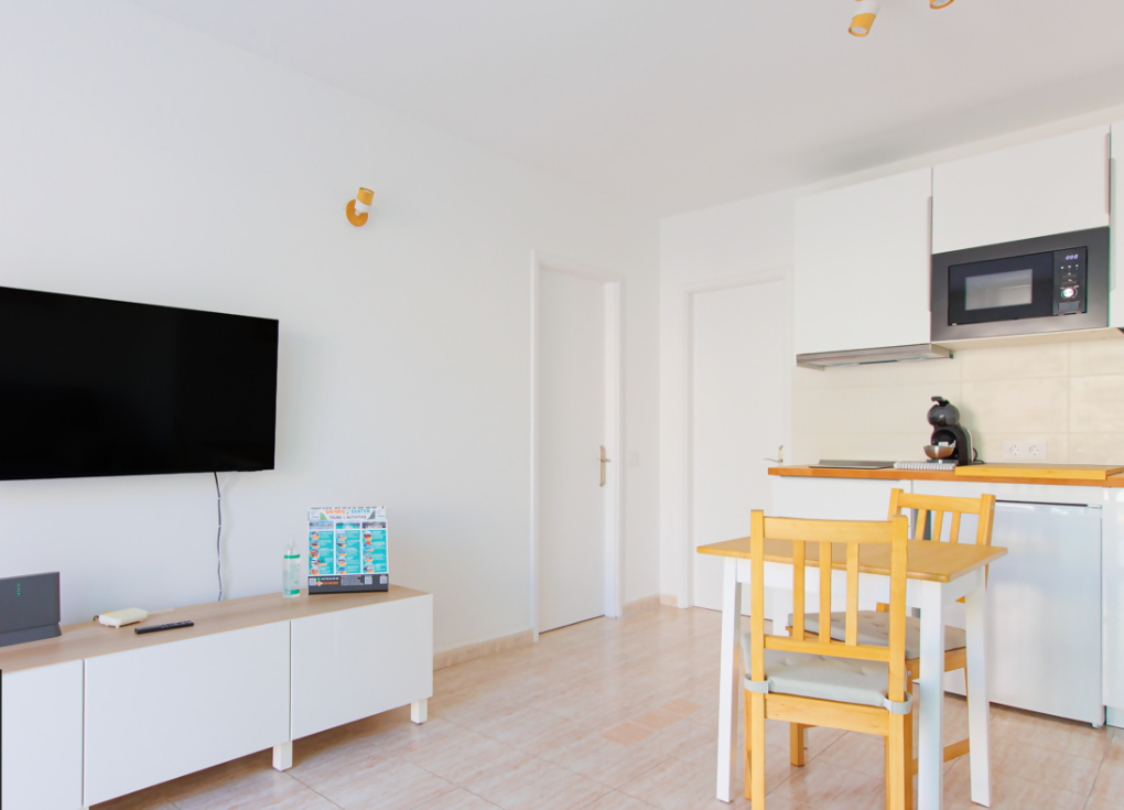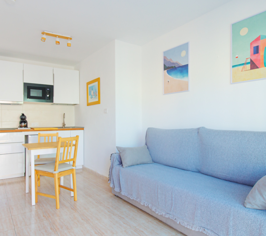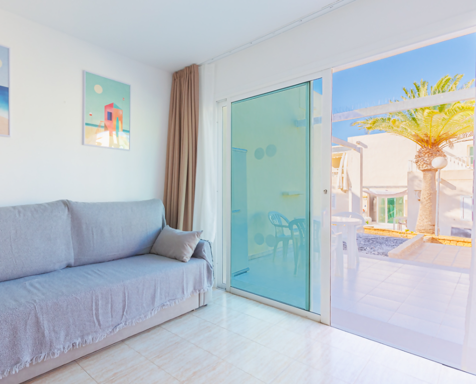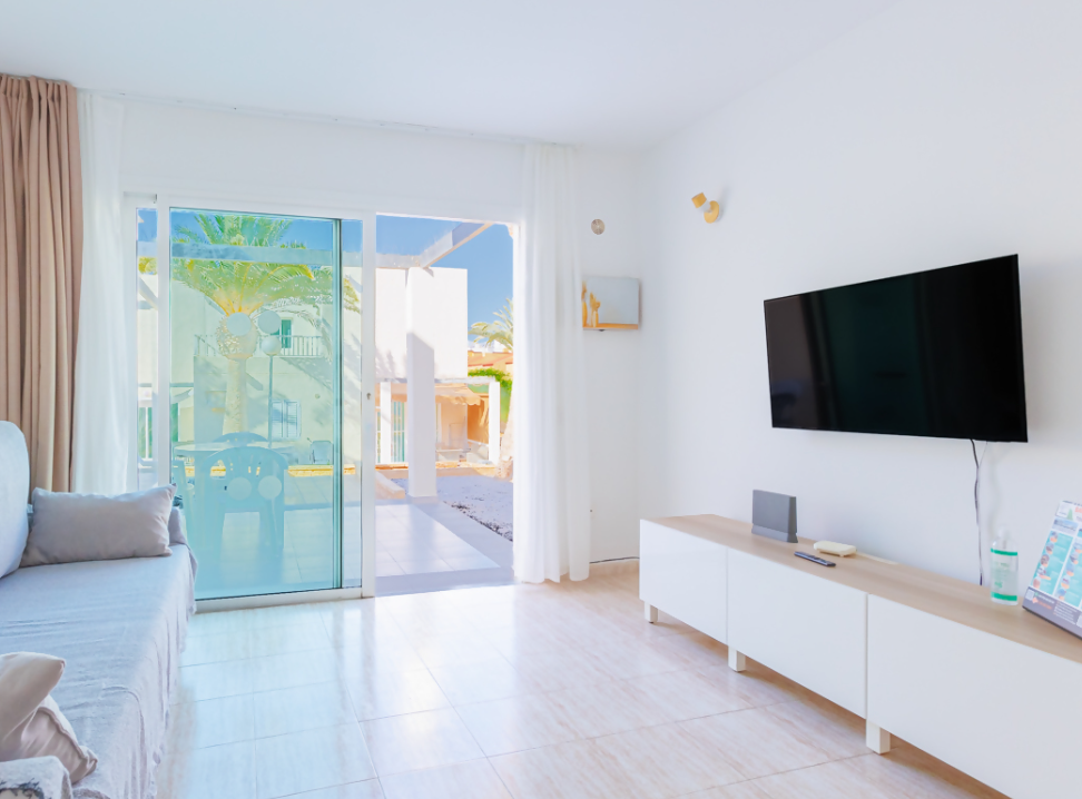 Bonito apartamento a pocos pasos del centro de Corralejo. Situado en la planta baja, dispone de SMART TV, conexión a Internet y una gran terraza privada. Se compone de un dormitorio con cama de matrimonio, un salón con sofá cama y cocina equipada, un baño con ducha y bidet. El apartamento tiene: WiFi FIBRA Mb Televisor de pantalla plana Lavadora Refrigerador Placa eléctrica Microondas Tostadora Cafetera americana Café Moka en cápsulas Hervidor Platos, ollas y sartenes Ducha Bidés Champú Gel de ducha Secador de pelo Plancha y tabla de planchar Caja fuerte Ropa de cama, baño y cocina. Calentador de agua de 50 litros TODO INCLUIDO. El apartamento está equipado con todo lo necesario para que tus vacaciones sean placenteras. En la residencia tendrás a tu disposición una piscina con tumbonas y una pista de tenis de libre acceso.