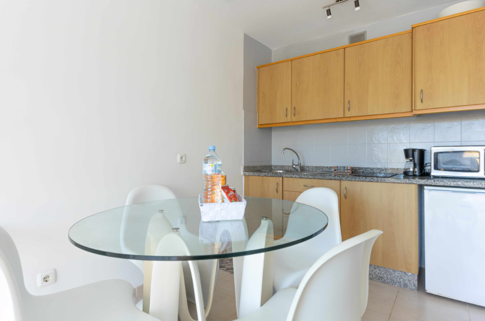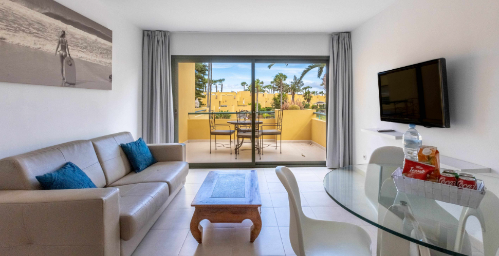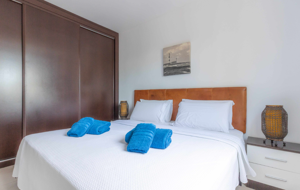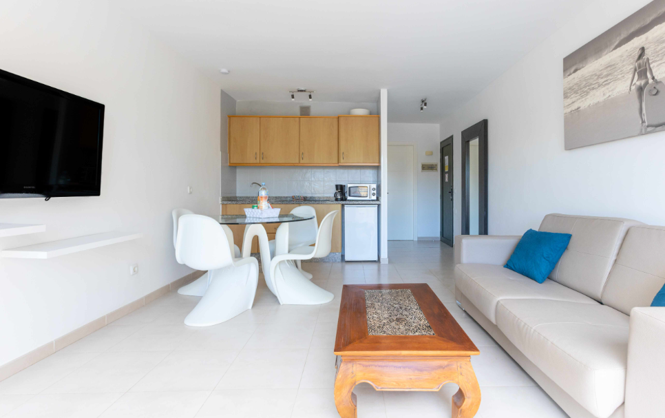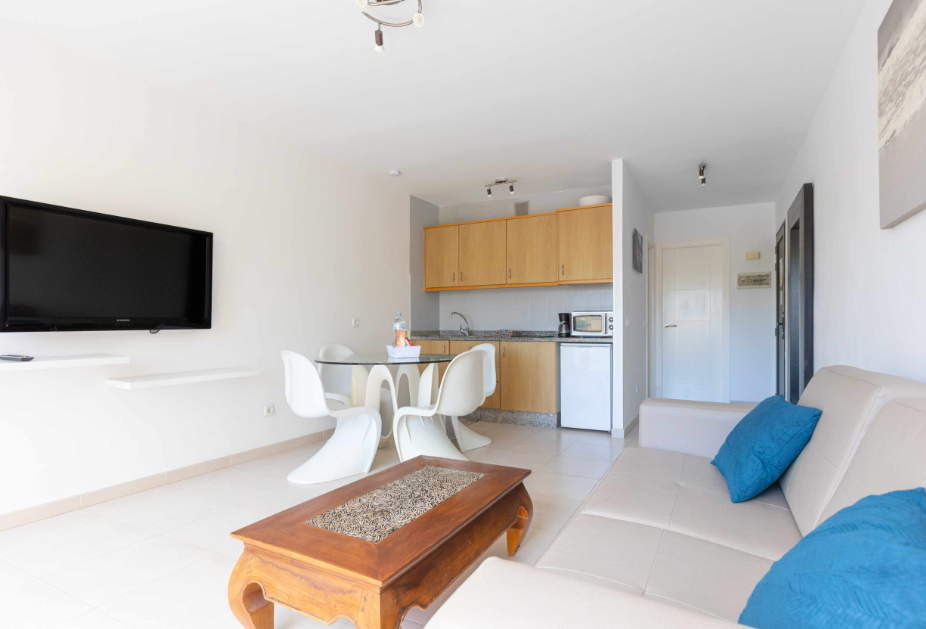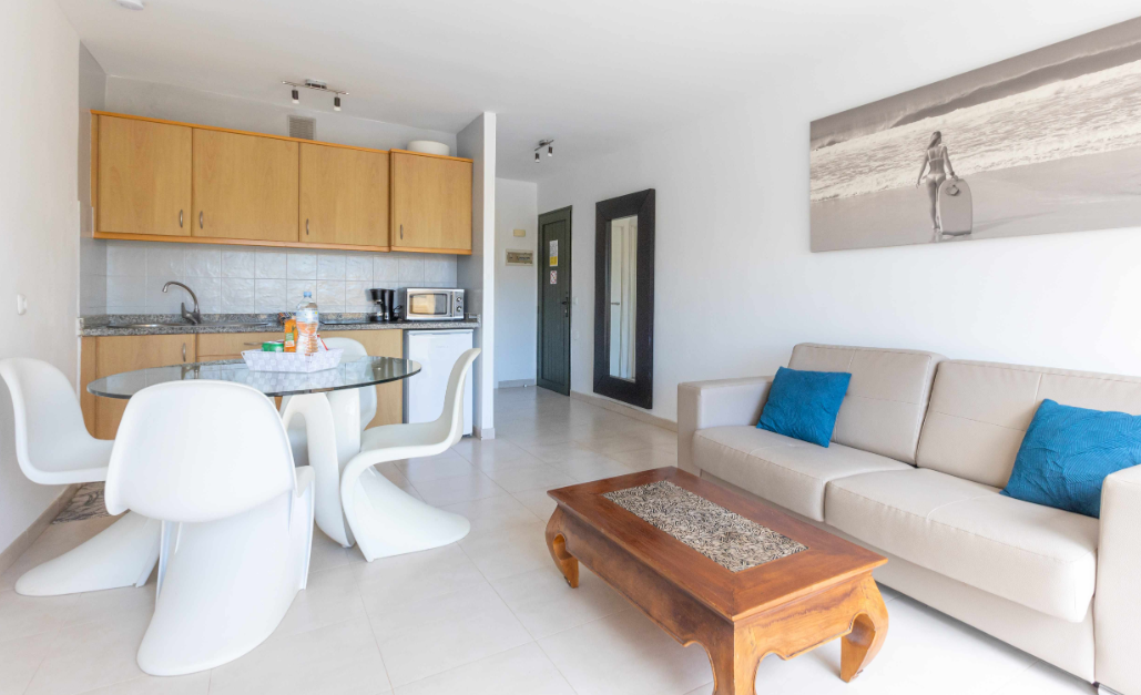 Moderno piso en primera planta, rodeado de vegetación en la bonita Residencia Jardín Atlántico, a pocos pasos del centro de Corralejo y de las hermosas playas del Parque Natural de las Dunas. Consta de un dormitorio con dos camas individuales unidas en una cama de matrimonio, salón-cocina con sofá-cama y televisión, un cuarto de baño con una amplia ducha, y un soleado balcón con mesa, sillas, sombrilla y una agradable vista a la gran piscina y jardines. En el interior encontrará todo lo necesario WiFi de alta velocidad SMART-TV Caja fuerte Plancha y tabla de planchar, Nevera, Placa eléctrica, Horno microondas, Tostadora, Cafetera italiana, Cafetera americana, Vajilla, ollas y sartenes, Ducha, Secador de pelo, Champú, Gel de ducha, Calentador de agua de 30 litros. Ropa de cama, baño y cocina. TODO INCLUIDO La residencia, muy bien mantenida, ofrece una gran piscina con tumbonas y sombrillas, rodeada de hermosos jardines. Nuestros huéspedes también tendrán acceso a un gimnasio, un bar y una zona de lavandería que funciona con monedas.Un barrio tranquilo a poca distancia de la calle principal de Corralejo. Junto al famoso centro comercial Il Campanario, donde encontrará un supermercado bien surtido, tiendas, bares, restaurantes y mercadillos de productos locales y artesanía abiertos todos los días de 8 a 22 horas.