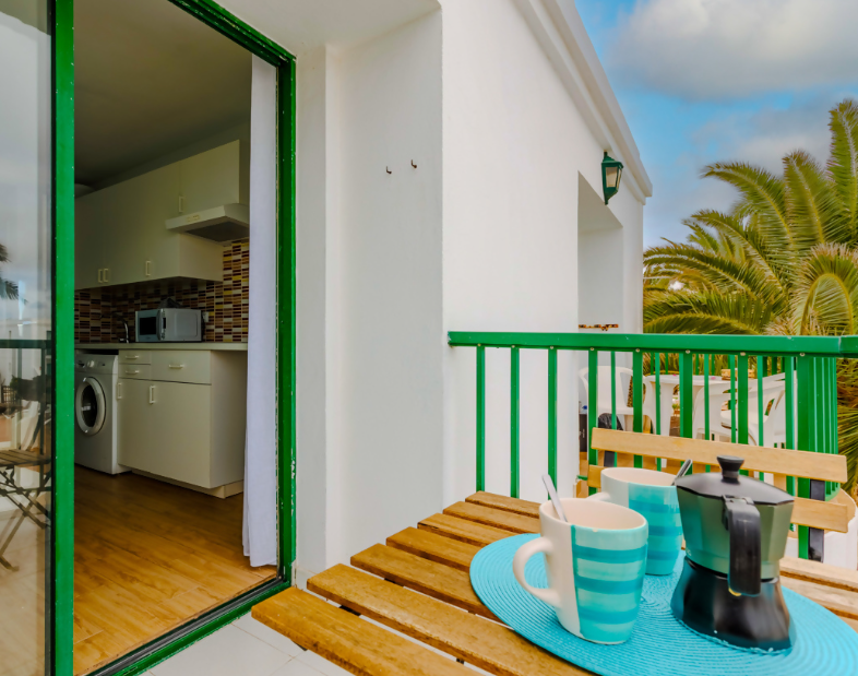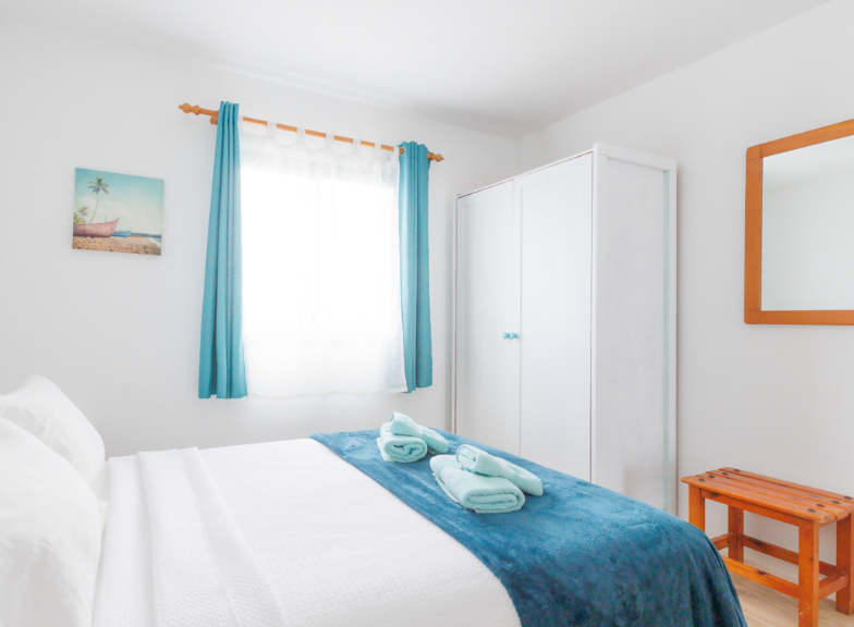 El piso está situado en la primera planta, por lo que se accede a él a través de una escalera. En el interior hay todo lo necesario: Vajilla y batería de cocina Tostadora Moka italiana y americana Hervidor de agua Microondas Placa de 4 fuegos Frigorífico SMART TV de pantalla plana Lavadora Ducha Secador de pelo Champú Gel de ducha Ropa de cama, baño y cocina Plancha y tabla de planchar Calentador de agua de 30lt Wi-Fi TODO INCLUIDO La residencia cuenta con un servicio de videovigilancia 24 horas. Tendrá a su disposición: aparcamiento para coches y bicicletas, una pista de tenis y dos piscinas con tumbonas. Somos un equipo de profesionales y nuestra experiencia le garantiza una estancia sin preocupaciones. Estaremos siempre disponibles para atender todas sus necesidades. El piso está situado en un barrio tranquilo. Se puede llegar al centro de Corralejo a pie, disfrutando de un agradable paseo, en unos 15 minutos. A tan solo 5 minutos se encuentra el famoso centro comercial El Campanario, donde encontrará un supermercado bien surtido, bares, restaurantes, tiendas y todos los domingos y jueves un bonito mercadillo de artesanía local.