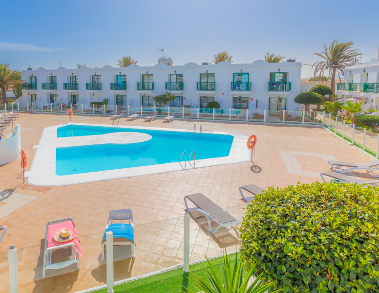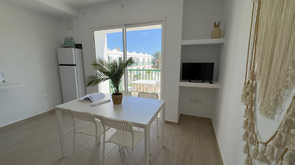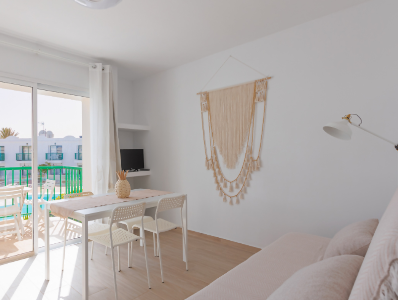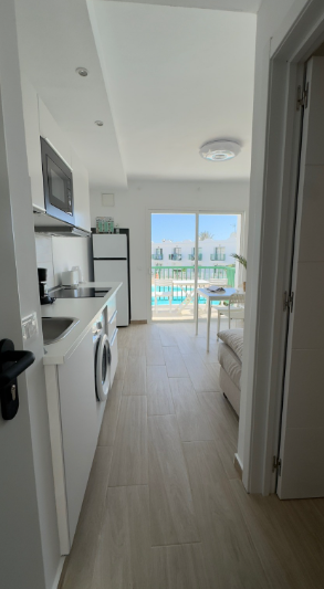 Piso situado en la primera planta del complejo residencial San Valentín, con parking, dos piscinas y pista de tenis. Consta de un dormitorio con cama de matrimonio, un salón con sofá cama, un cuarto de baño con ducha, una cocina y un balcón soleado con vistas a la piscina. El apartamento está en el primer piso, por lo que se puede acceder por una escalera. En el interior se suministra todo lo que necesita: Vajilla y ollas Sandwichera Moka Cafetera de Capsulas Dolce Gusto Hervidor Microondas Placa con 3 quemadores Nevera y congelador TV de pantalla plana Caja fuerte Plancha y tabla de planchar Lavadora Ducha Secador de pelo Champú Gel de ducha Ropa de cama, de baño y de cocina Calentador 30lt WiFi FIBRA 100 Mb TODO INCLUIDO La residencia dispone de un servicio de video vigilancia las 24 horas del día. Tendrá a su disposición: aparcamiento para coches y bicicletas, una pista de tenis y dos piscinas con tumbonas. Somos un grupo de profesionales y nuestra experiencia le garantiza una estancia sin preocupaciones. Siempre estaremos disponibles para satisfacer todas sus necesidades. El apartamento está situado en un barrio tranquilo. Es posible caminar hasta el centro de Corralejo, disfrutando de un agradable paseo, en unos 15 minutos. A solo 5 minutos se encuentra el famoso centro comercial El Campanario, donde encontrará un supermercado bien surtido, bares, restaurantes, tiendas y todos los domingos y jueves un hermoso mercado de artesanía local.