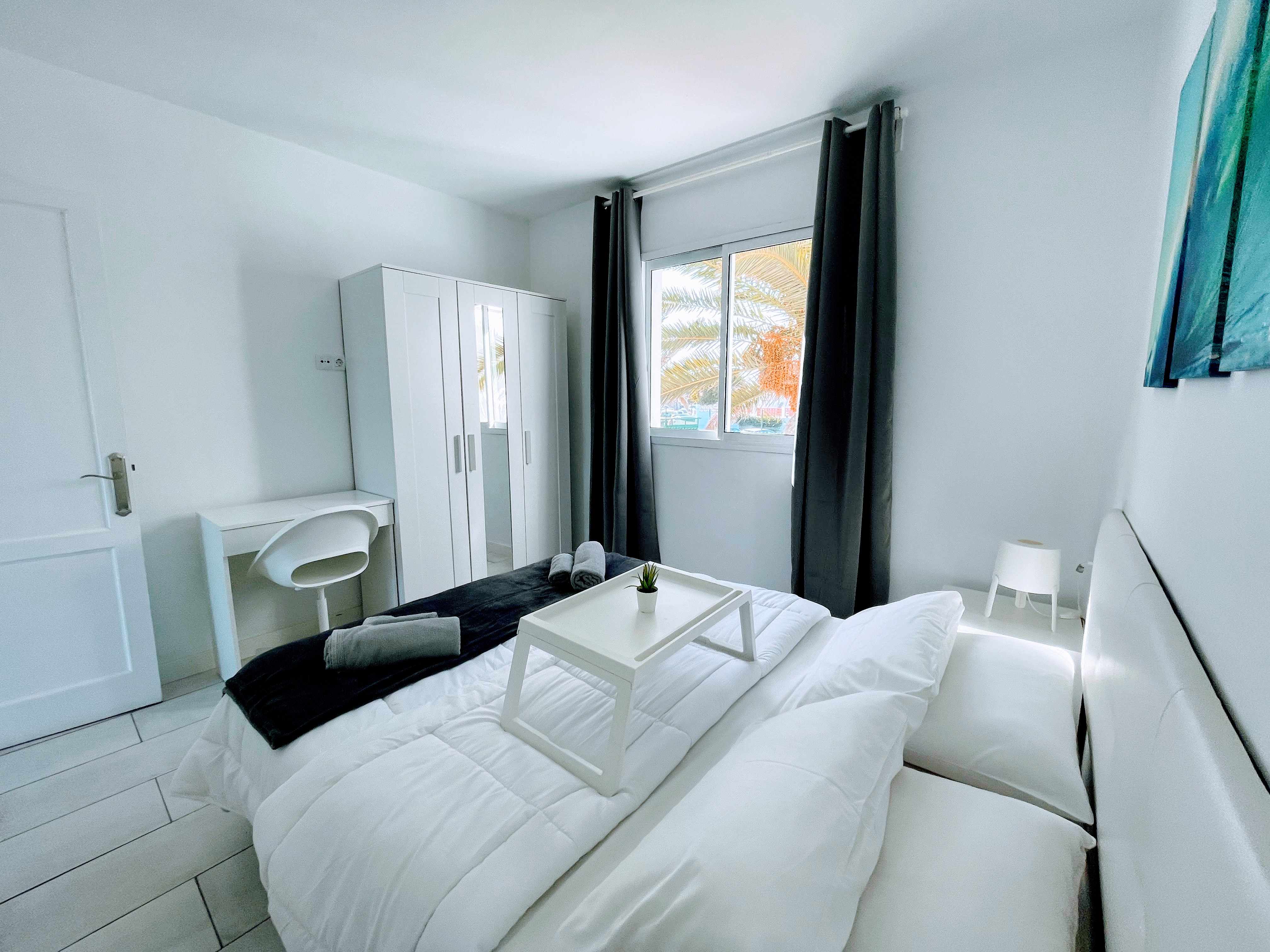 El departamento tiene: WiFi FIBRA 300 Mb Televisión de pantalla plana Caja de seguridad Lavadora Refrigerador Placa de inducción de 3 quemadores Microonda Tostadora Sandwich Mocha para cafe Vajilla y ollas Ducha Secador de pelo Champú Gel de ducha Ropa de cama de baño y cocina Calentador 30Lt Plancha y tabla de planchar. TODO INCLUIDO. La residencia cuenta con un servicio de video vigilancia las 24 horas. Tendrá a su disposición: estacionamiento para autos y bicicletas, una cancha de tenis y dos piscinas con tumbonas.Barrio tranquilo a pocos pasos de la calle principal del pueblo de Corralejo. A unos 500 metros se encuentra el famoso centro comercial Il Campanario, donde encontrará un supermercado bien abastecido, tiendas, bares, restaurantes y mercados con productos típicos y artesanales abiertos todos los días de 8 a 22 h. Se puede llegar al centro de Corralejo en 5 minutos, con la zona peatonal llena de tiendas, clubes, heladerías, restaurantes y discotecas. Es posible caminar hasta el centro de Corralejo, disfrutando de un agradable paseo junto al mar, en unos 15 minutos.