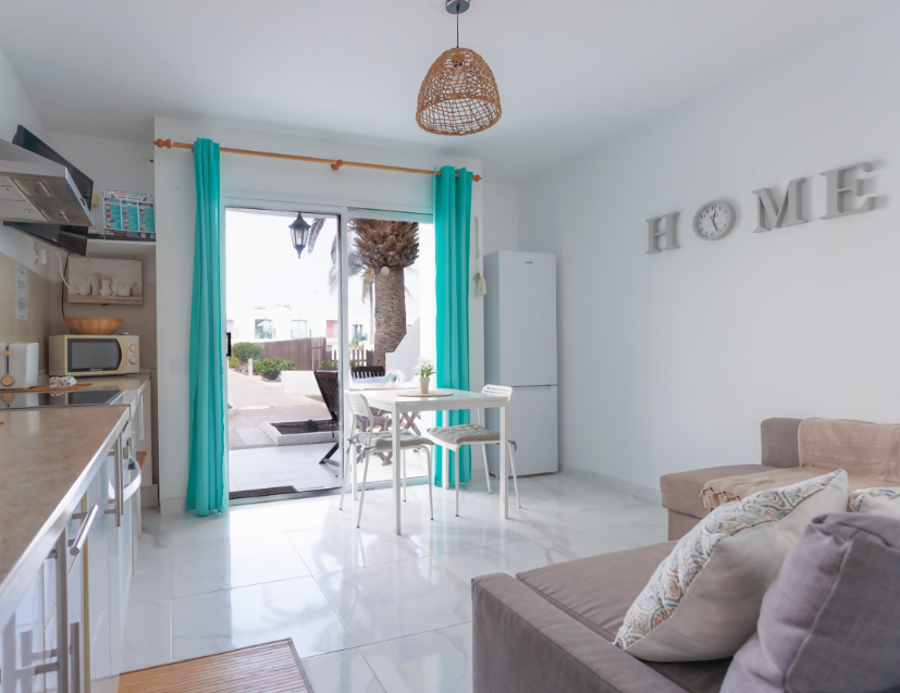 En el interior se suministra todo lo necesario: Platos y utensilios de cocina; Sándwichera; Microondas; Horno; Café moca italiano y americano; Cocina de tres fuegos; Refrigerador y congelador; Televisión de pantalla plana; Ducha; Secador de pelo; Champú; Gel de ducha; Ropa de cama, baño y paños de cocina; Plancha y tabla de planchar, Calentador de agua de 30 litros, WiFi TODO INCLUIDO La residencia cuenta con un servicio de vigilancia por vídeo las 24 horas del día. Tendrá a su disposición: aparcamiento para coches y bicicletas, pista de tenis y dos piscinas con hamacas. Un barrio tranquilo a pocos pasos de la calle principal del pueblo de Corralejo. A unos 500 metros se encuentra el famoso Centro Comercial Il Campanario, donde se encuentra un supermercado bien surtido, tiendas, bares, restaurantes y mercados de productos locales y artesanía abiertos todos los días de 8 a 22 horas. Se puede llegar al centro de Corralejo en 5 minutos, con la zona peatonal llena de tiendas, clubes, heladerías, restaurantes y discotecas. Se puede llegar al centro de Corralejo a pie, disfrutando de un agradable paseo por el mar, en unos 15 minutos.