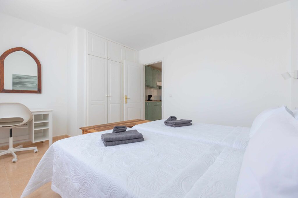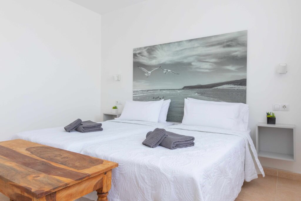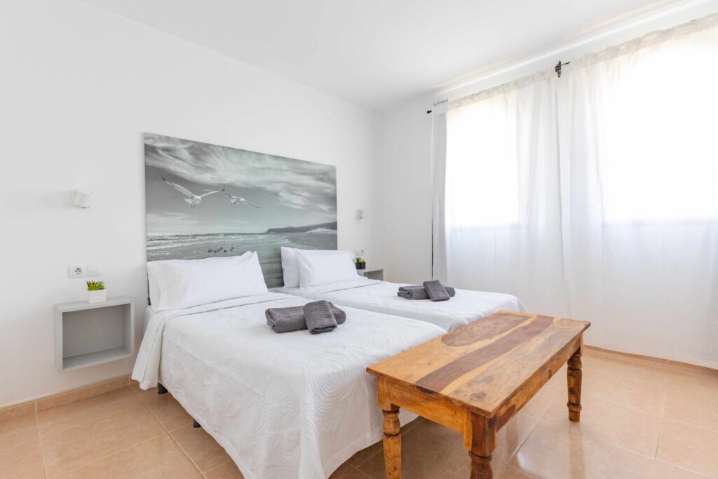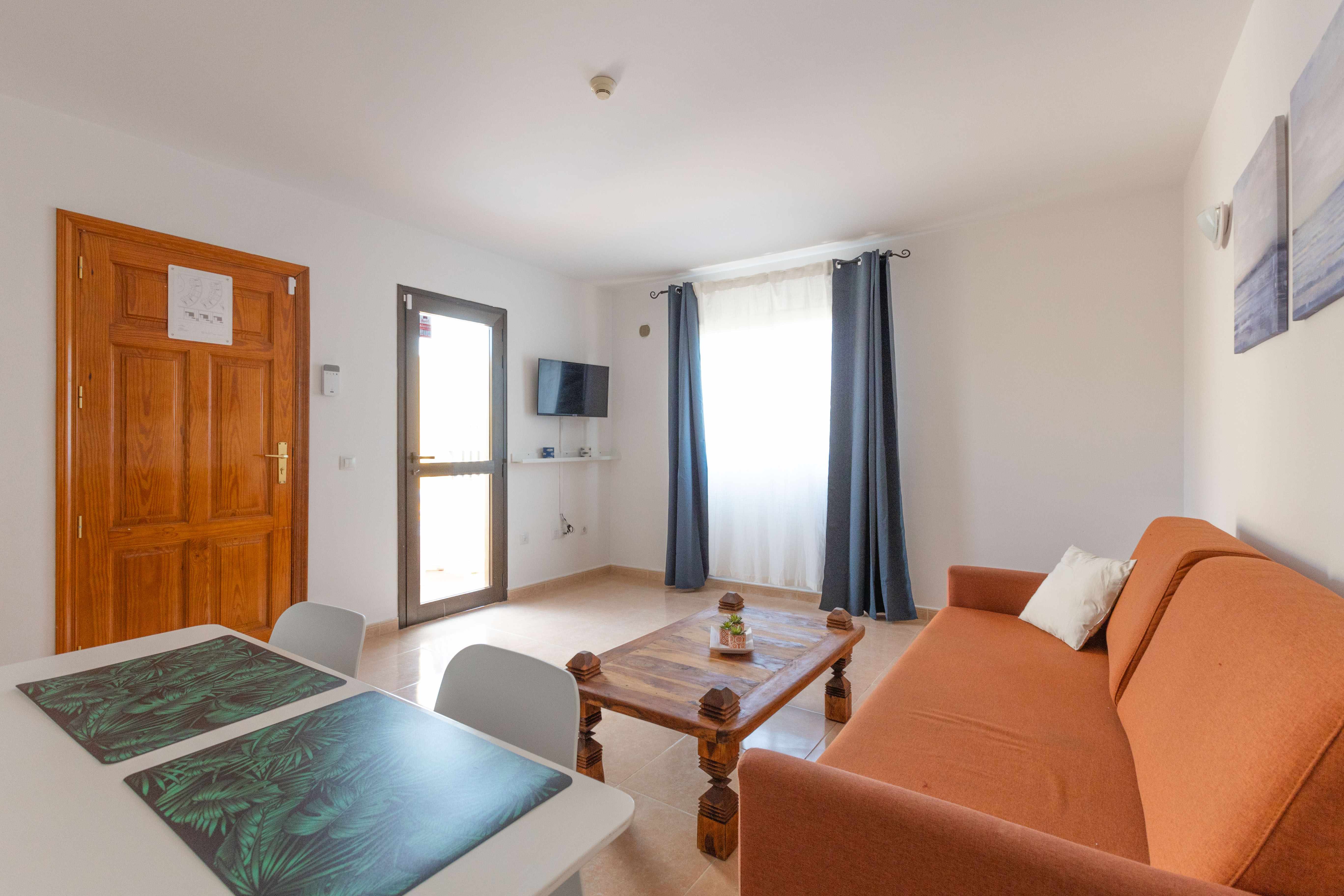 El piso está situado en la primera planta, por lo que se accede a él a través de una escalera. En el interior, se proporciona todo lo necesario: Vajilla y batería de cocina , Sandwichera, Cafetera americana, Cafetera italiana, Hervidor de agua, ,Microondas, Placa eléctrica con dos posiciones, Frigorífico, TV de pantalla plana, Lavadora, Bañera, Secador de pelo, Champú, Gel de ducha, Jabón de manos, Ropa de cama, baño y cocina, Plancha y tabla de planchar, Calentador de agua de 30 litros, WiFi, TODO INCLUIDO. El piso está situado en un barrio tranquilo. Se puede llegar al principio de la calle principal de Corralejo, disfrutando de un agradable paseo, en unos 10 minutos. Justo fuera de la residencia hay bares, una pizzería y el Supermercado Hiperdino Express. A sólo 15 minutos se encuentra el famoso centro comercial El Campanario, donde encontrará un supermercado bien surtido, bares, restaurantes, tiendas y todos los domingos y jueves un bonito mercado de artesanía local. Nuestro consejo es que alquile un coche para visitar la isla.
