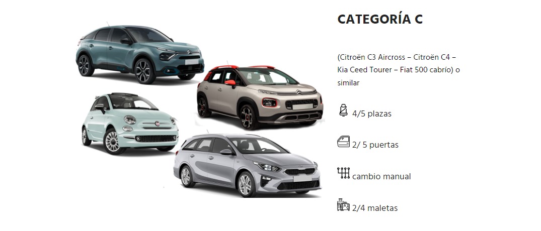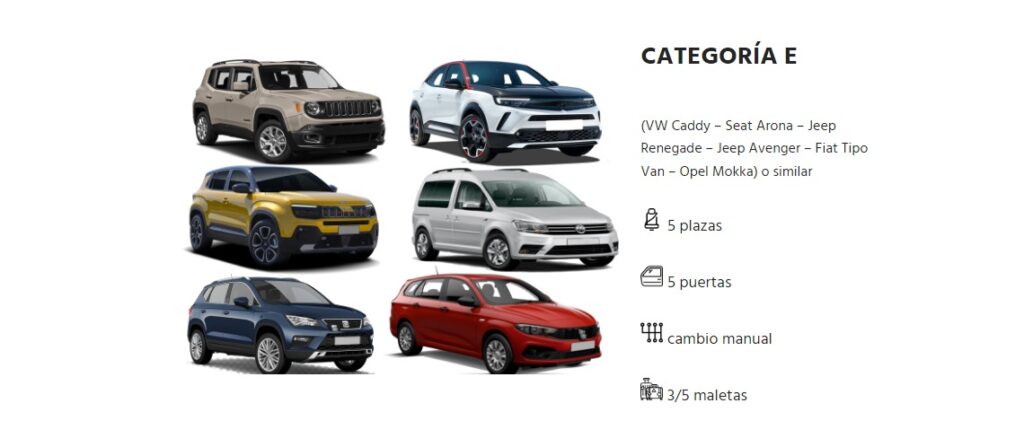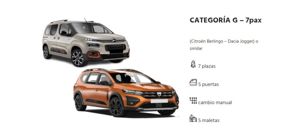 •  Las preferencias específicas de marca/modelo están sujetas a disponibilidad en el momento del alquiler. No va vinculado necesariamente a un vehículo concreto sino a un grupo de vehículos similares en características técnicas y de habitabilidad.