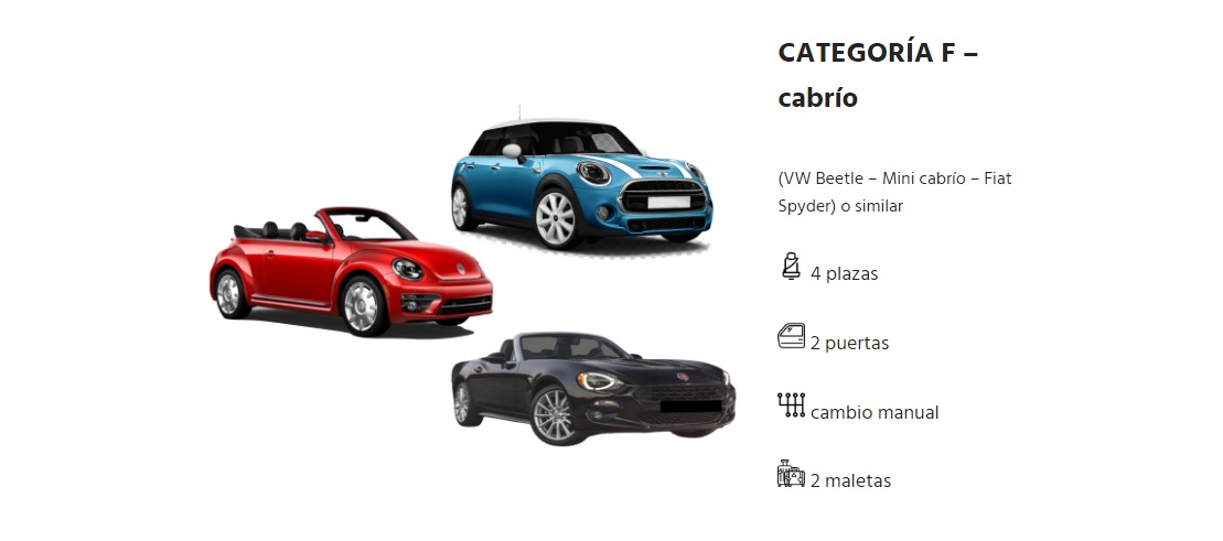 — El precio y el coche están bloqueados solo en el momento de la reserva. Los precios pueden cambiar debido a que el mercado se mueve constantemente. Una vez aceptado el presupuesto, deberás enviarnos los datos que te solicitaremos en un formulario. Nosotros nos encargaremos de congelar el precio y la categoría de coche elegida. Una vez aceptada la solicitud, recibirá un correo electrónico de confirmación con el resumen de la reserva, las instrucciones para llegar al punto de encuentro para la entrega y devolución y las condiciones y normativas del alquiler —